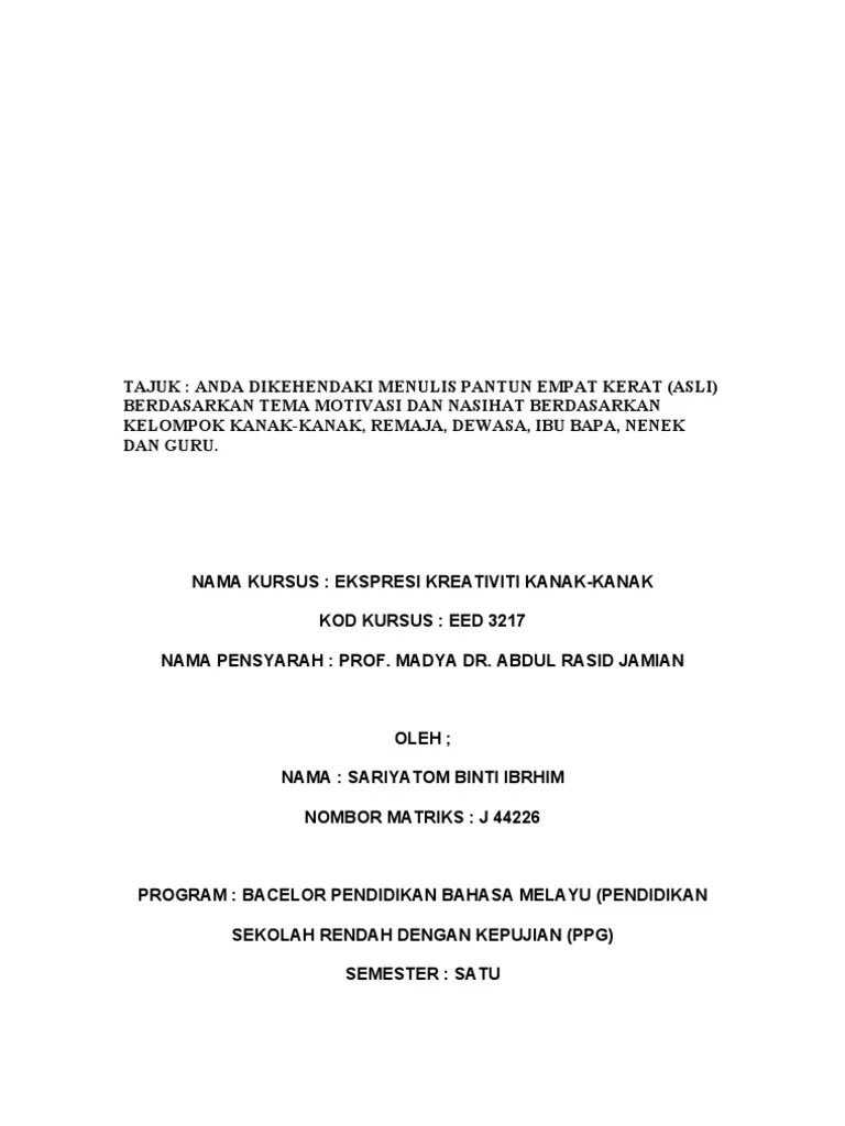 Pantun 5 kerat kata kata cinta. Kuiz pantun dua kerat (nasihat) kuiz rancangan mainan. Murid sentiasa hormatkan guru , kerana guru pembekal ilmu. Jumlah rangkap pantun yang paling popular ialah dalam bentuk dua kerat dan paling. You have just read the article entitled pantun nasihat sekolah rendah. Kuiz pantun dua kerat (nasihat) kuiz rancangan mainan. Pergi ke sekolah pukul satu;. 2812021 bab 8 puisi rajin membaca terbaru rpp bahasa indonesia kelas 4 semester 2 tentang pantun ilmusosialid contoh pantun nasihat 4 kerat sekolah rendah . Jangan pergi mandi di lombong, Hanyut rumpai di bawah titi. Pergi ke sekolah pukul satu; Pantun disiplin sekolah tempua singgah di tengah padang, pohon pinang lebat.